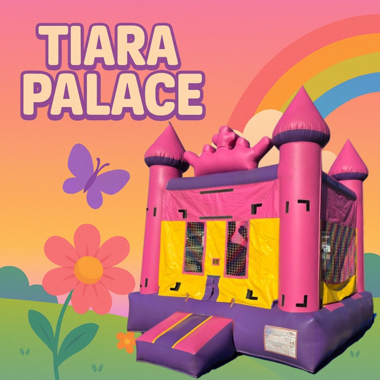 1Step into royal fun with the Tiara Palace, a dazzling inflatable designed to make birthdays, parties, and special events feel fit for a queen or king. This elegant unit features ornate, castle-inspired styling and a roomy bouncing area that invites kids to jump, play, and let their imaginations run wild. Built for safe, supervised play, the Tiara Palace offers bright, eye-catching colors and decorative accents that create a memorable centerpiece for any celebration. Easy to set up and suitable for backyard parties, birthdays, and community gatherings, the Tiara Palace blends whimsical charm with bouncing fun to keep the festivities bouncing from start to finish! RENTAL STARTS at $100 for the first 8 hours. After that, it’s $25 per additional hour, capped at $200 for a maximum rental of 13 hours. (The hours you book are the hours you’re billed. If pickup happens after the booked pickup time, or we arrange next‑day pickup after booking, there’s no extra charge for those additional hours.)